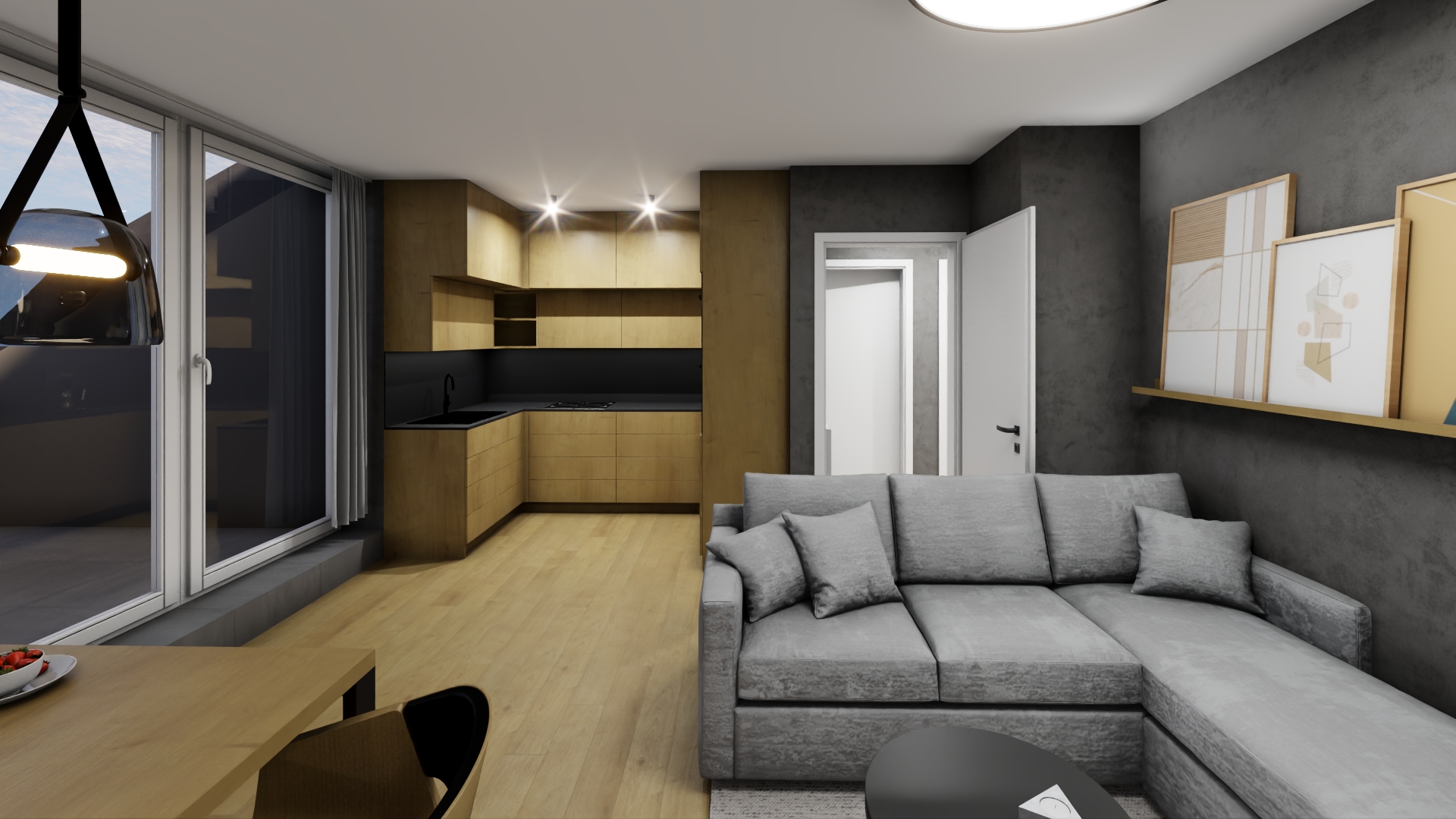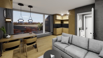 Obývací pokoj s kuchyňským koutem