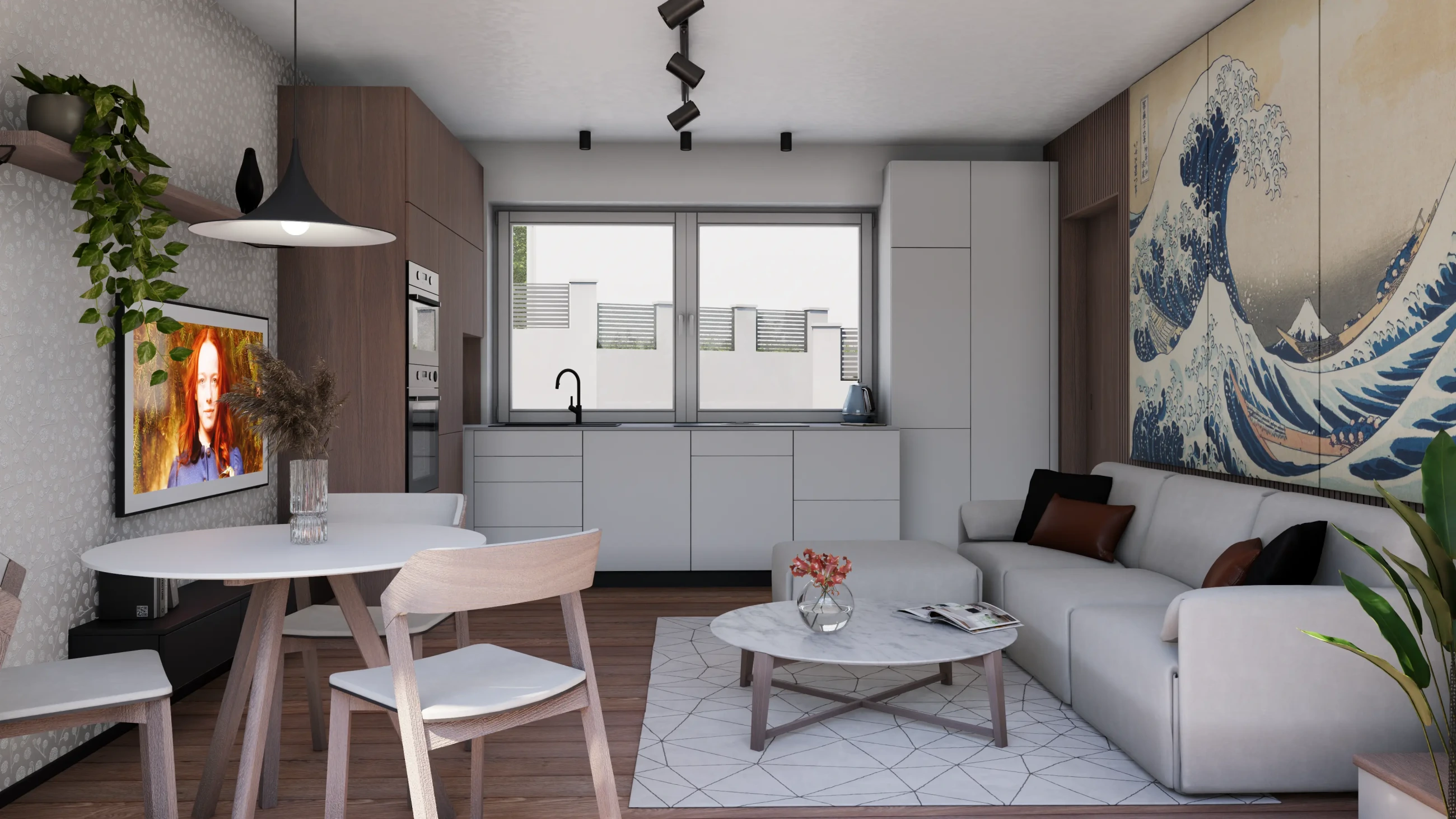 Obývací pokoj s kuchyňským koutem