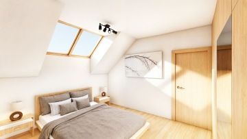 Představujeme Vám podkrovní byt o velikosti 2+kk o celkové výměře 68,40 m2. Jedná se o prostorný byt s obývacím pokojem vč. kuchyně, jedním pokojem a prostornou koupelnou s toaletou. K bytu náleží prostorná terasa o celkové výměře 10,37 m2.